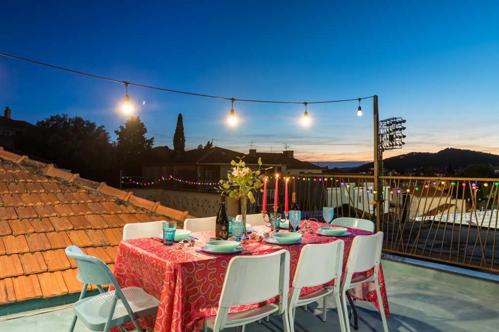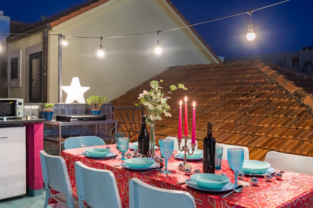 In a residential area of the city centre, our newly renovated house consists of 3 stylish studios on the 1st floor and a spacious sunny rooftop patio on the 2nd floor, featuring a fully fitted open-air kitchen, BBQ, lounge and dining area, all with scenic views.