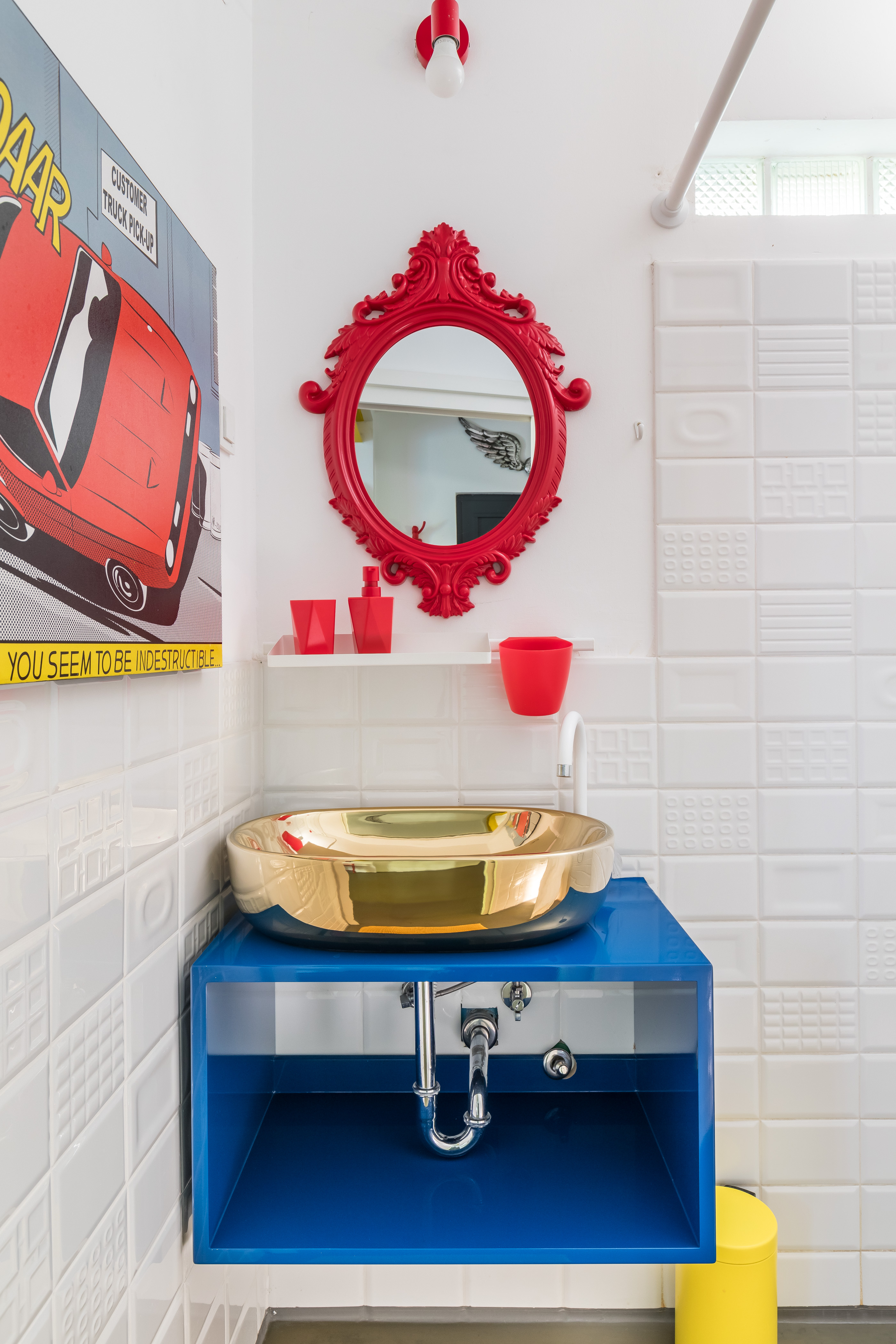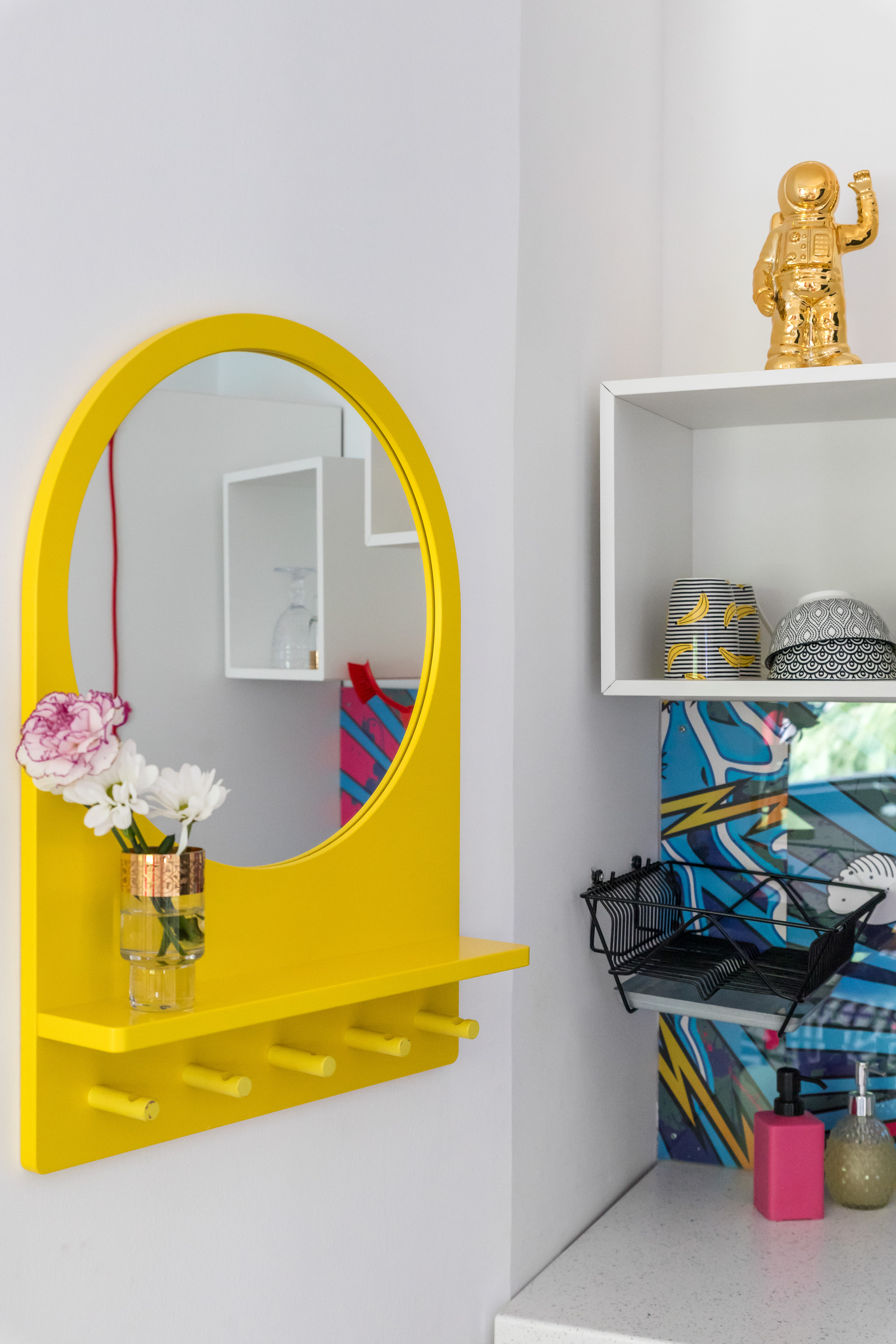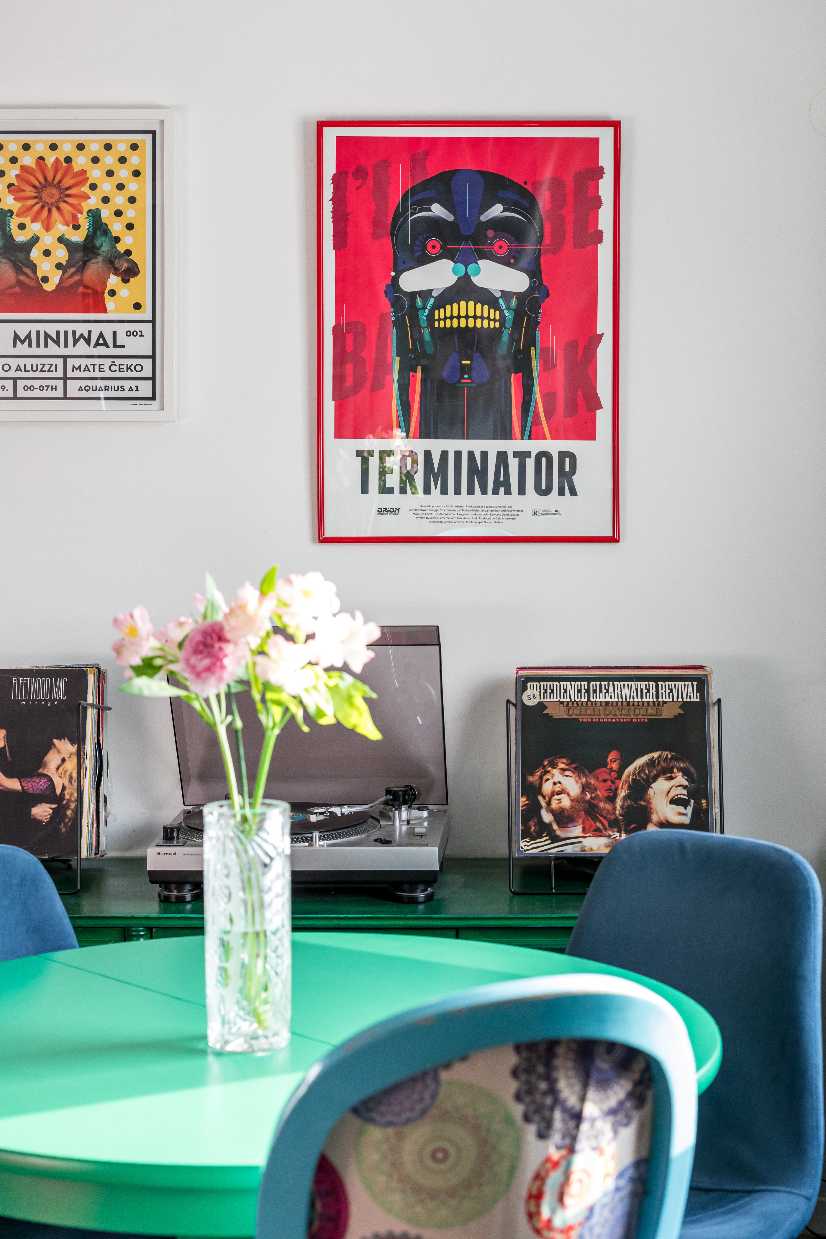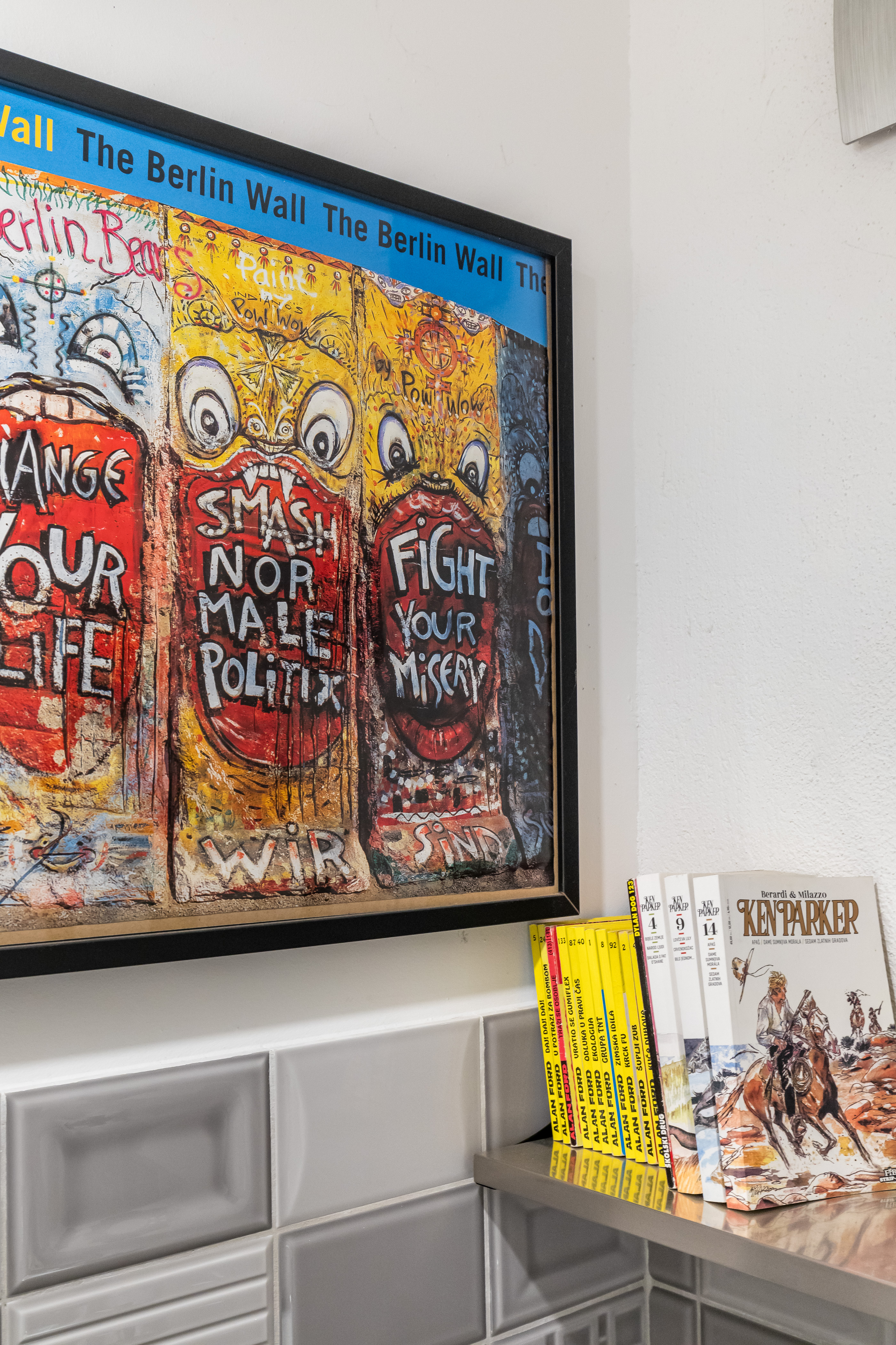 APARTMENT “S” or “Pop-Art” is decorated in a modern style with bright, colourful details, Lichtenstein’s posters, fresh white furniture, and poured epoxy floors. Although it’s the smallest, it has everything you need: a kitchenette, a stylish bathroom, and the only king-size bed, making it ideal for solo travellers, couples, and new families.